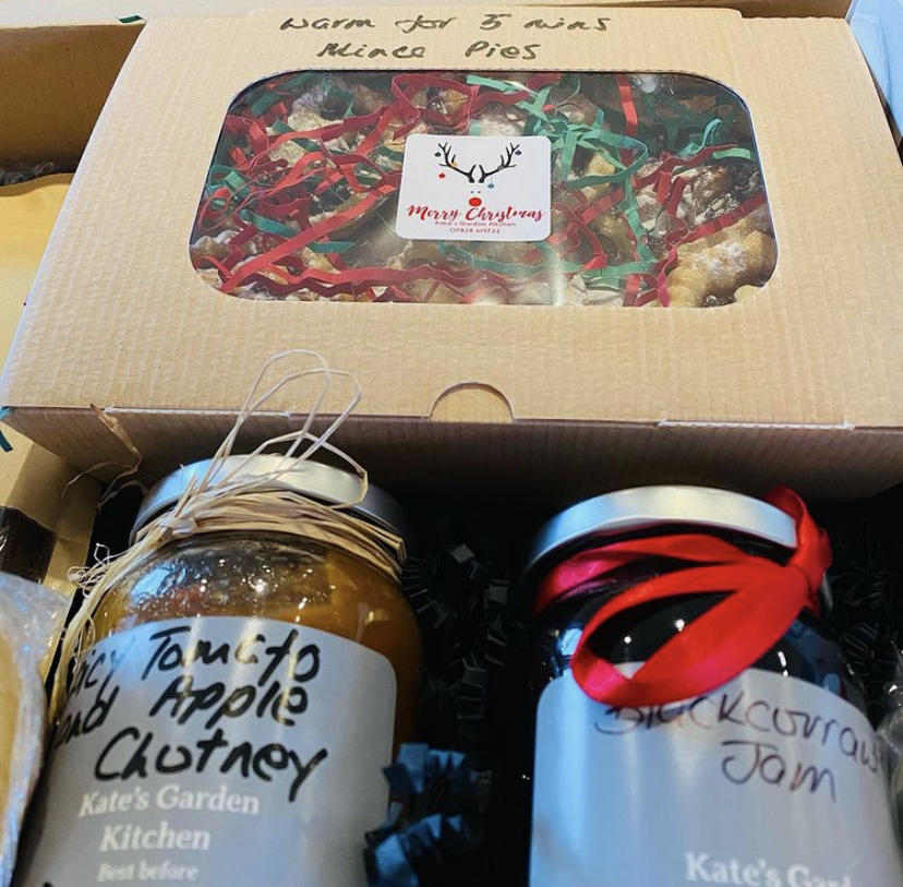 Why not send friends, family members or clients a gift box of homemade goodies? The hampers are packaged in eco friendly and recyclable card boxes tied with ribbon.